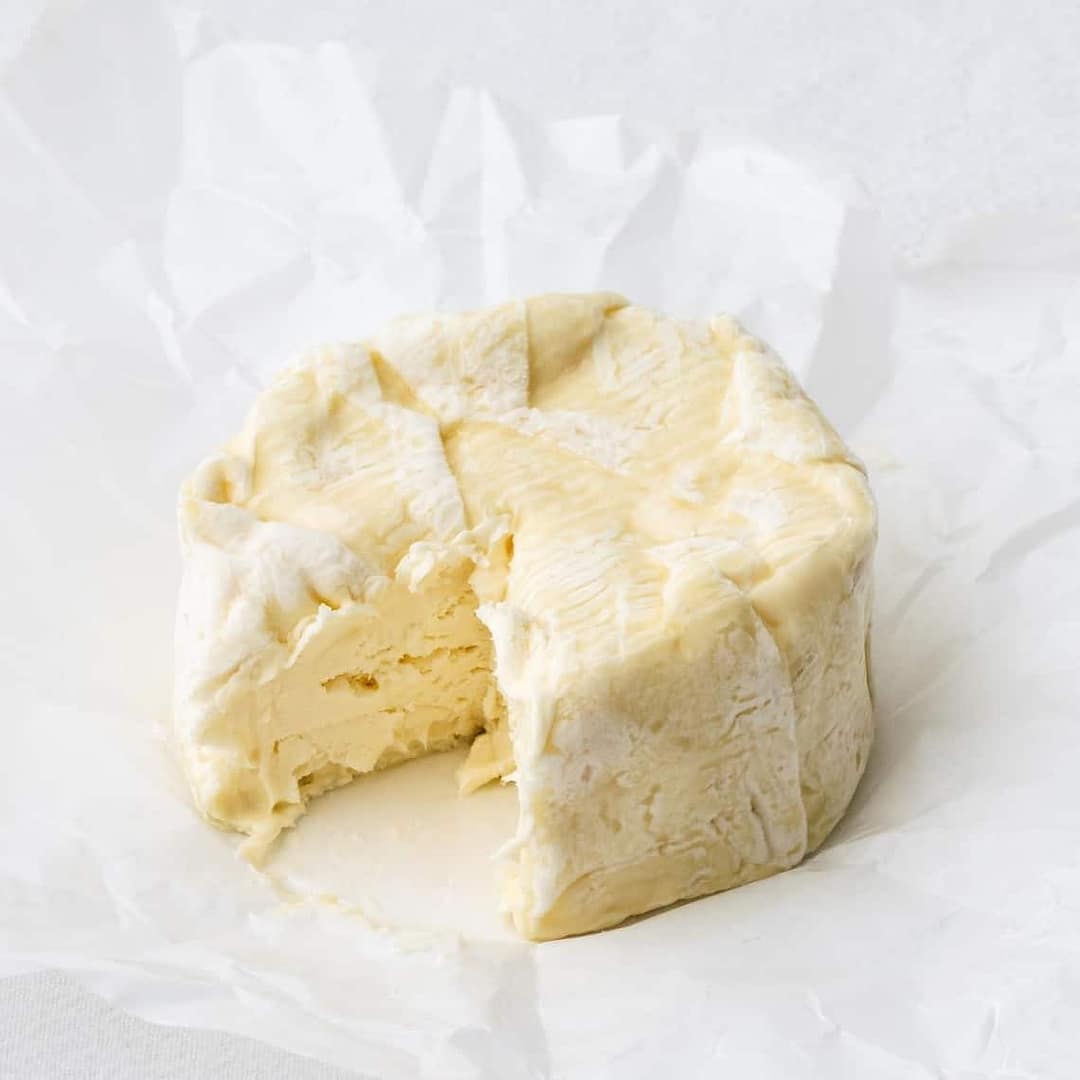 It is hand-made from local cow’s milk and added cream, which is curdled using traditional overnight lactic fermentation techniques that date back to monastic times. The protective lidded wooden box and old-fashioned wax-paper wrap create unique micro conditions that allow the carefully selected surface moulds to slowly ripen the fine, chalky interior of the cheese over 3-4 weeks.